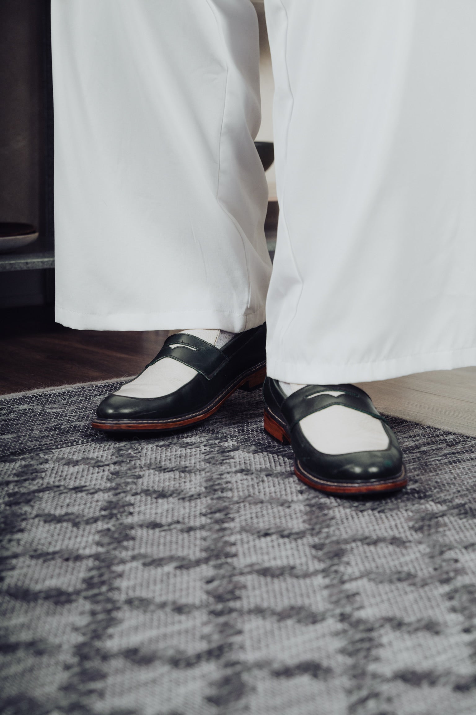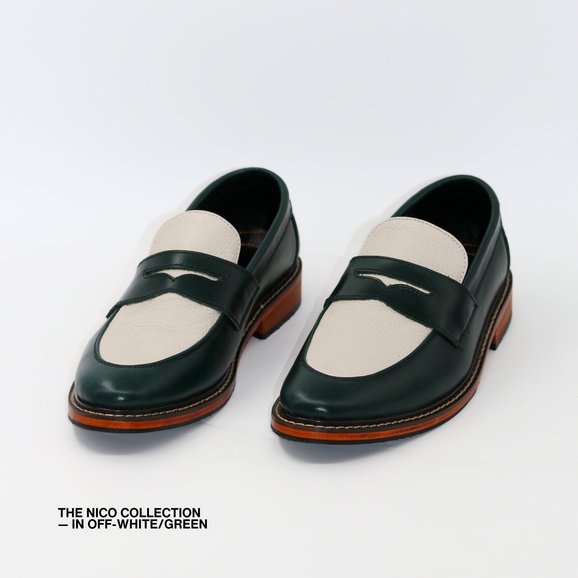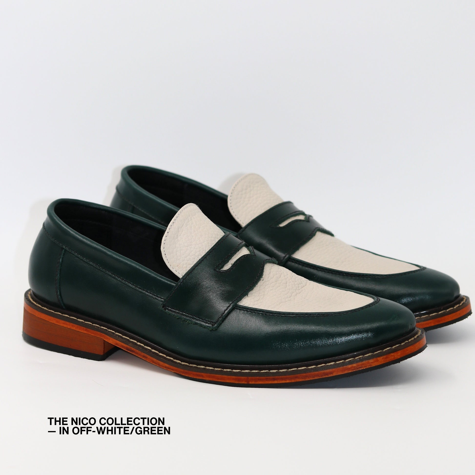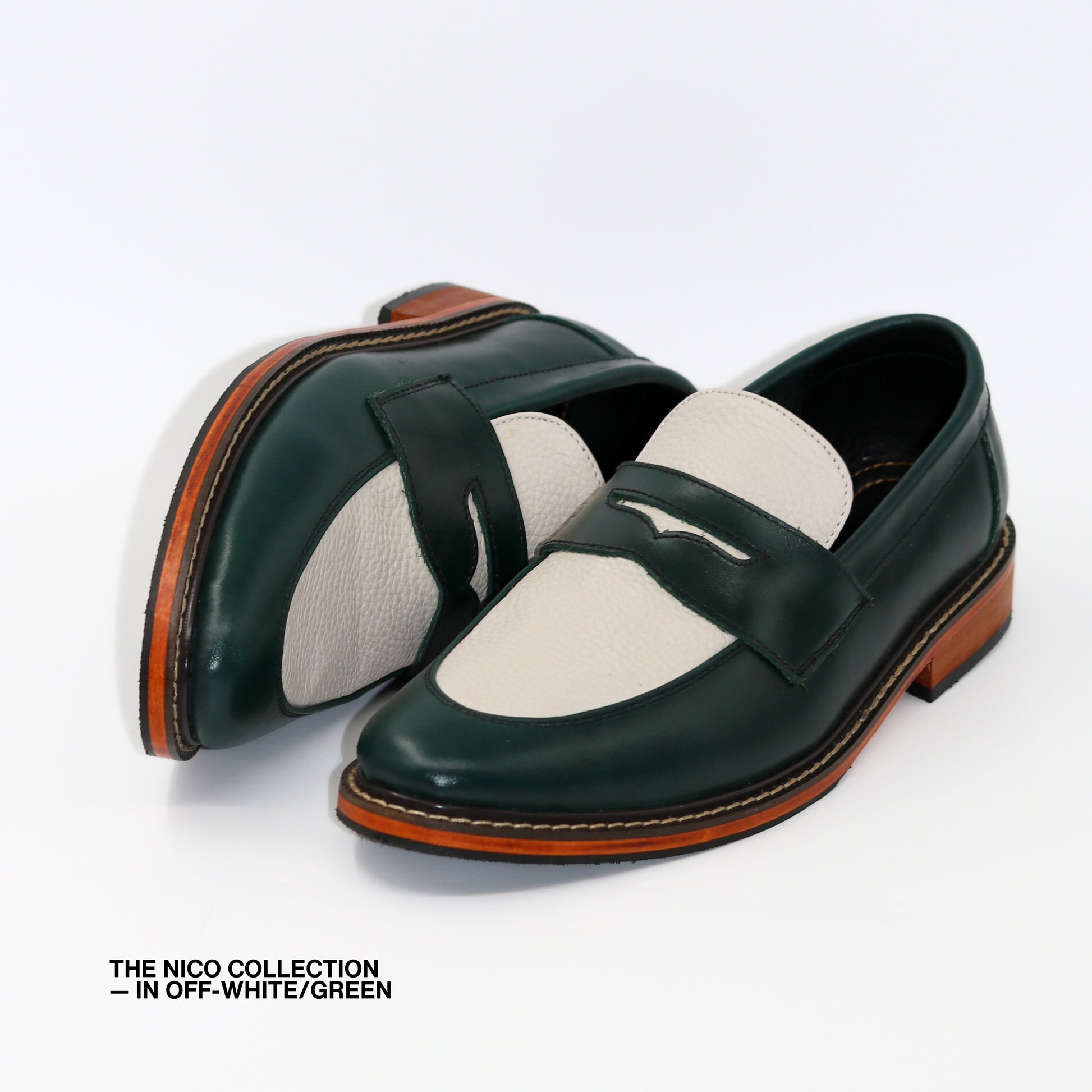 Nico Two Tone Loafers in Off-White/Green
