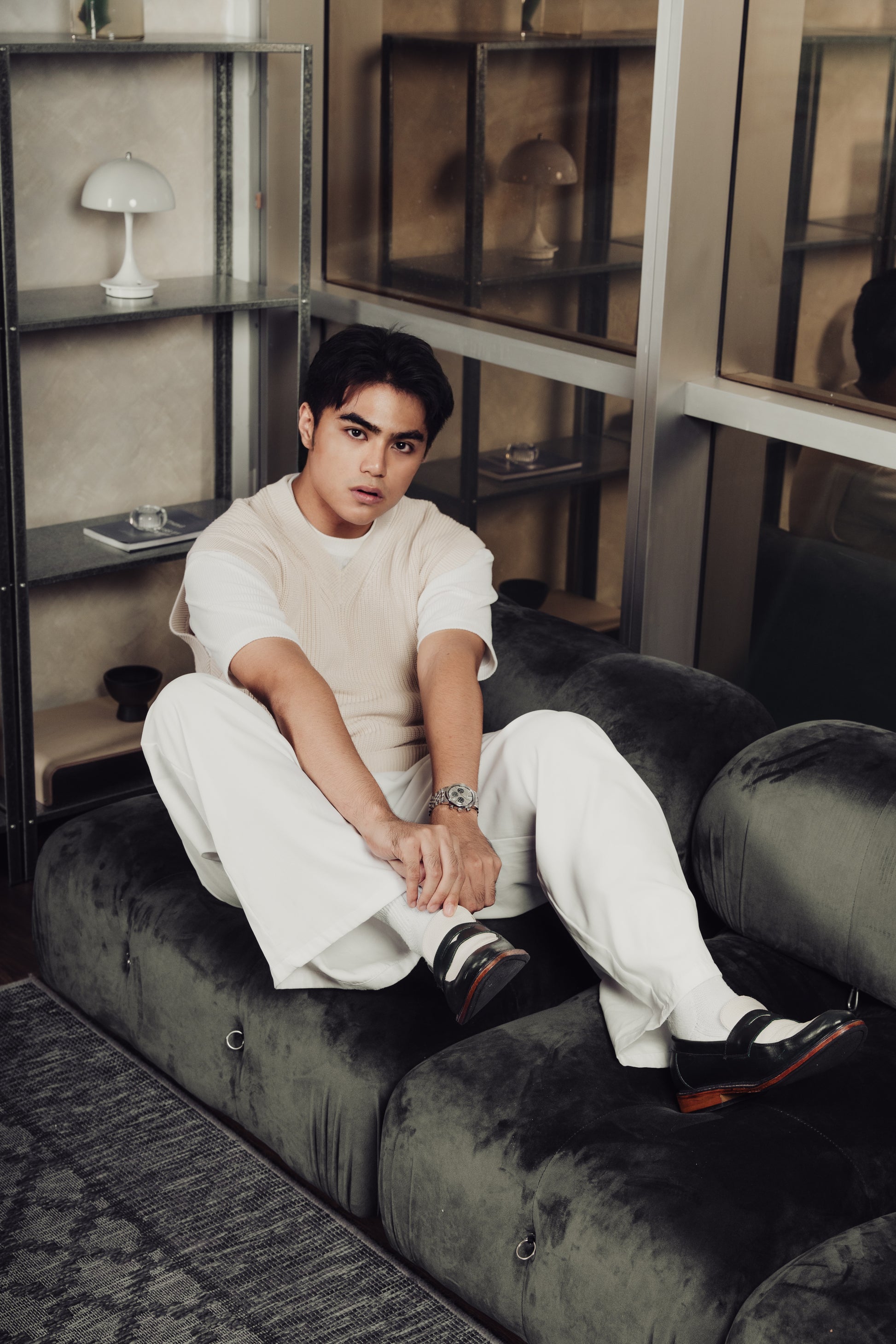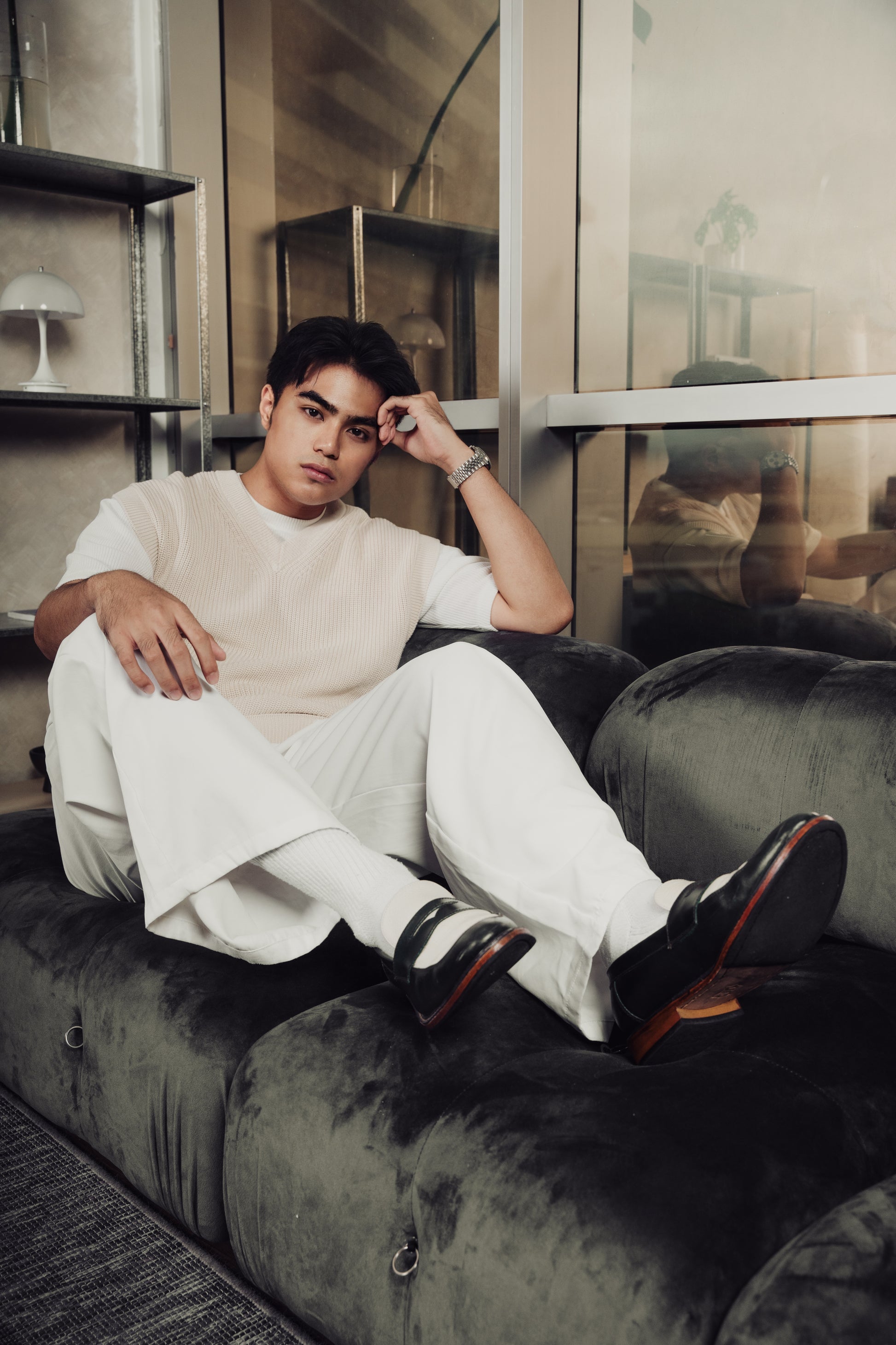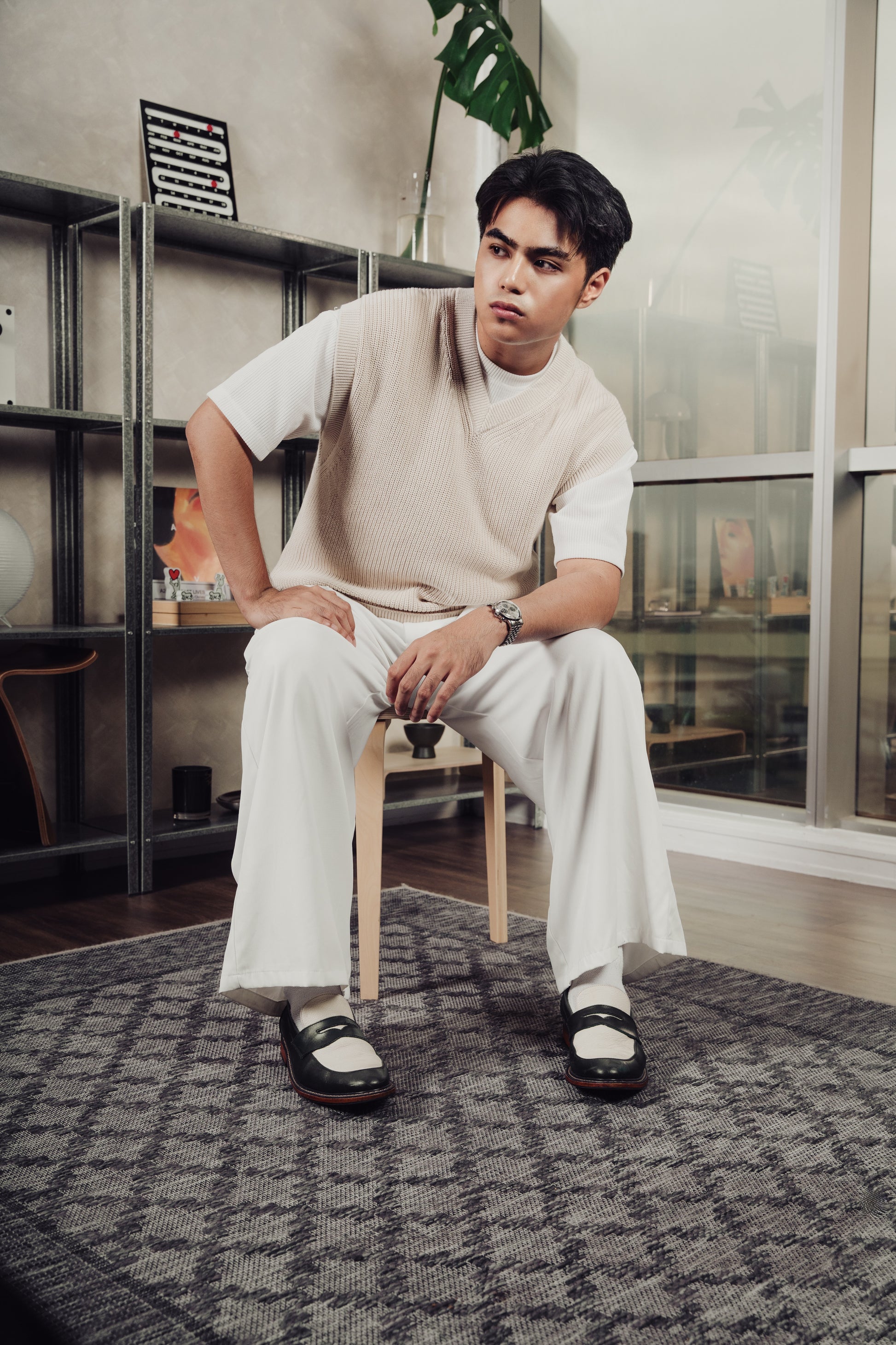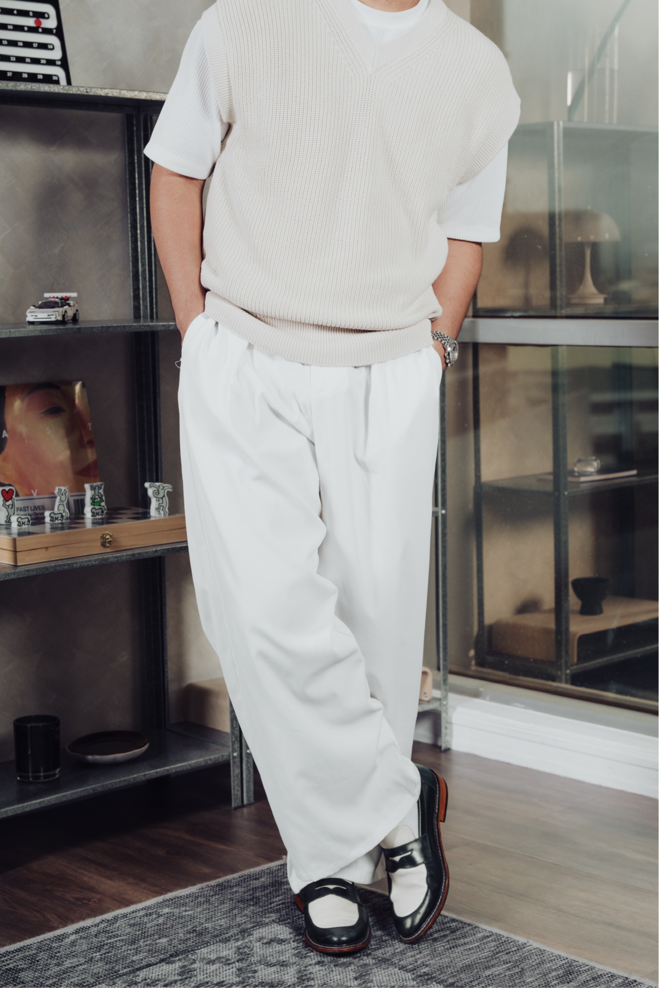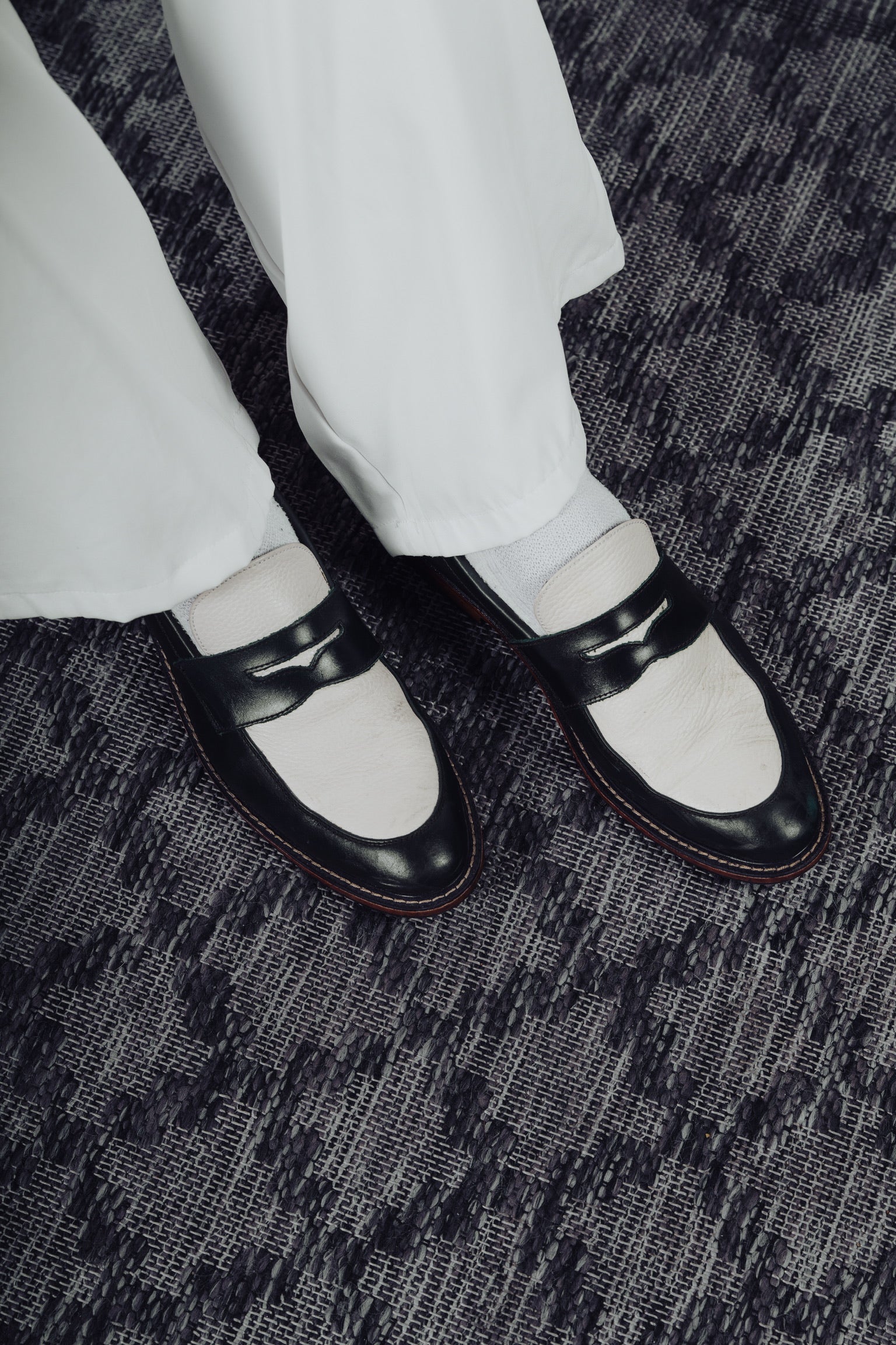 Nico Two Tone Loafers in Off-White/Green