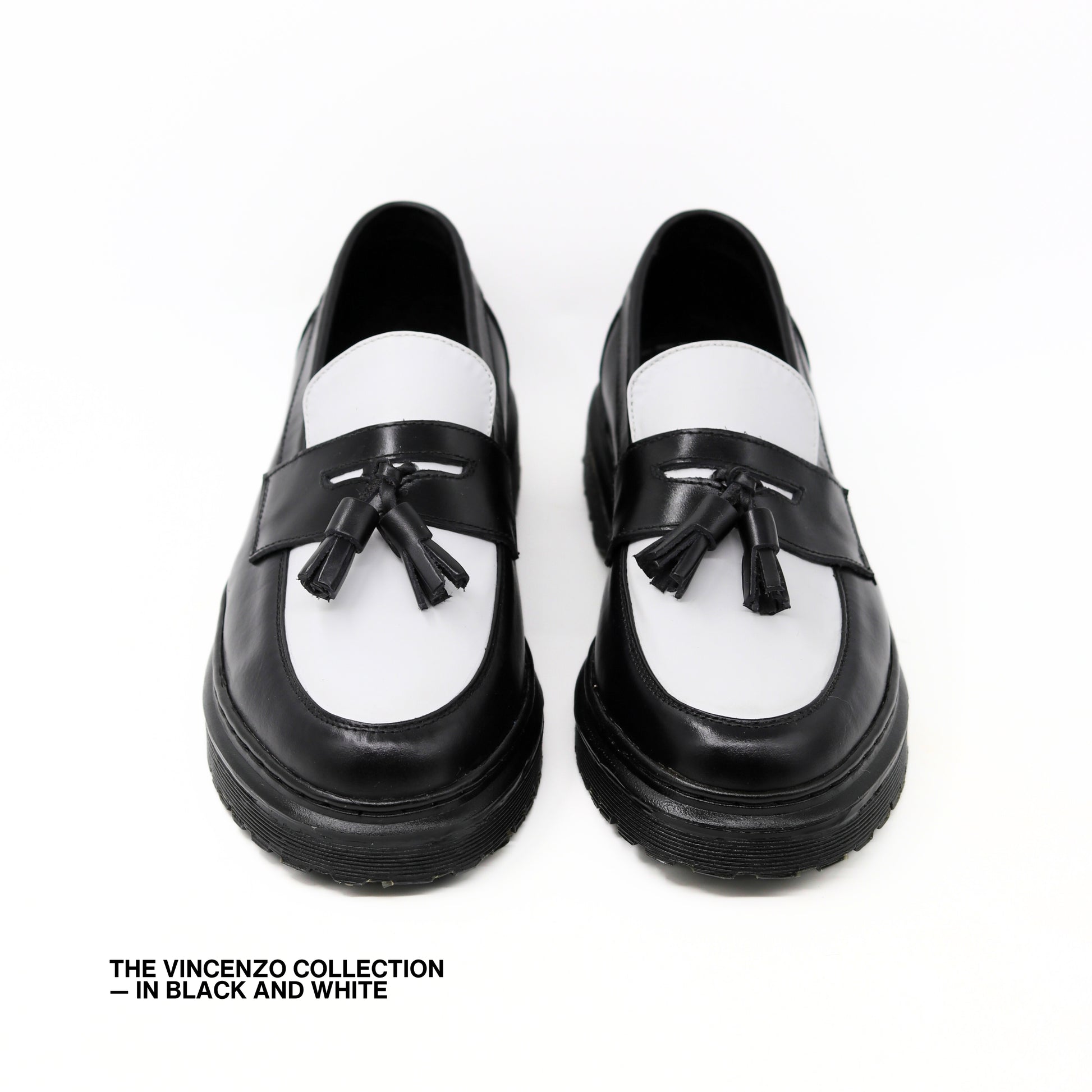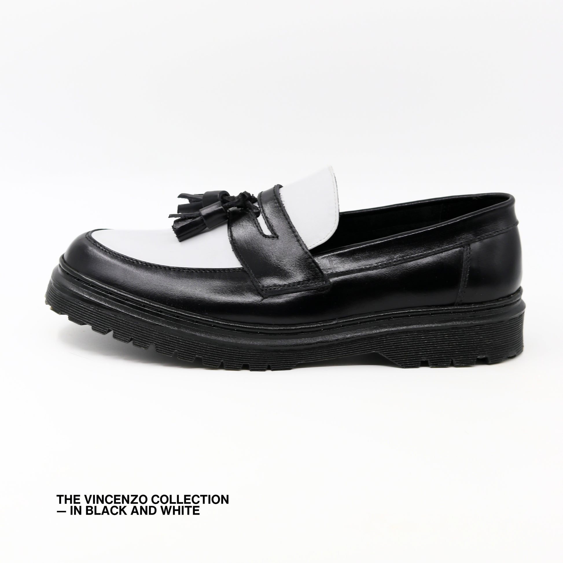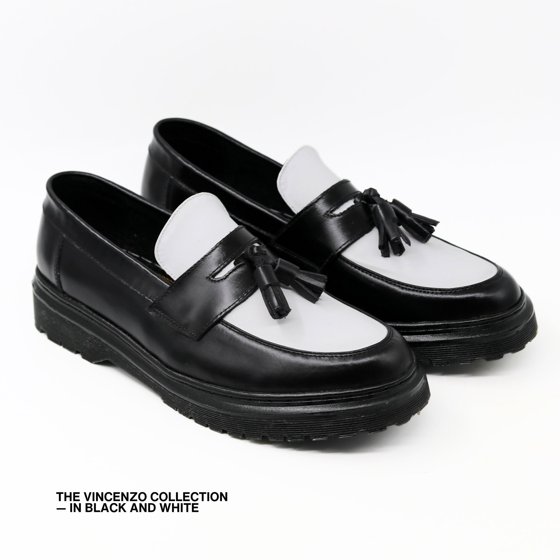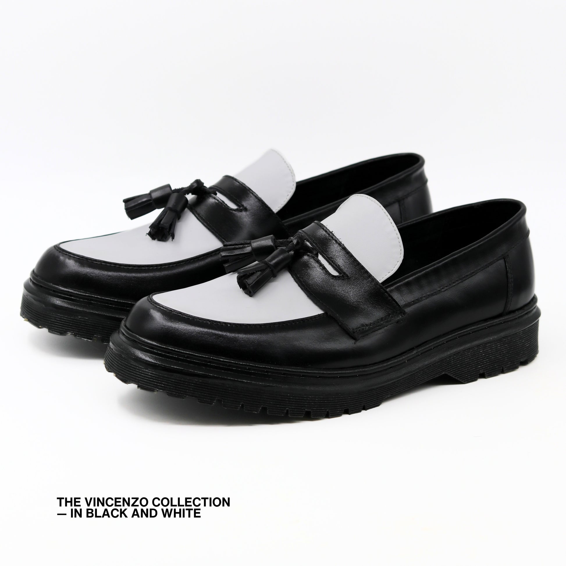 Vincenzo Tassel Loafers in Black & White